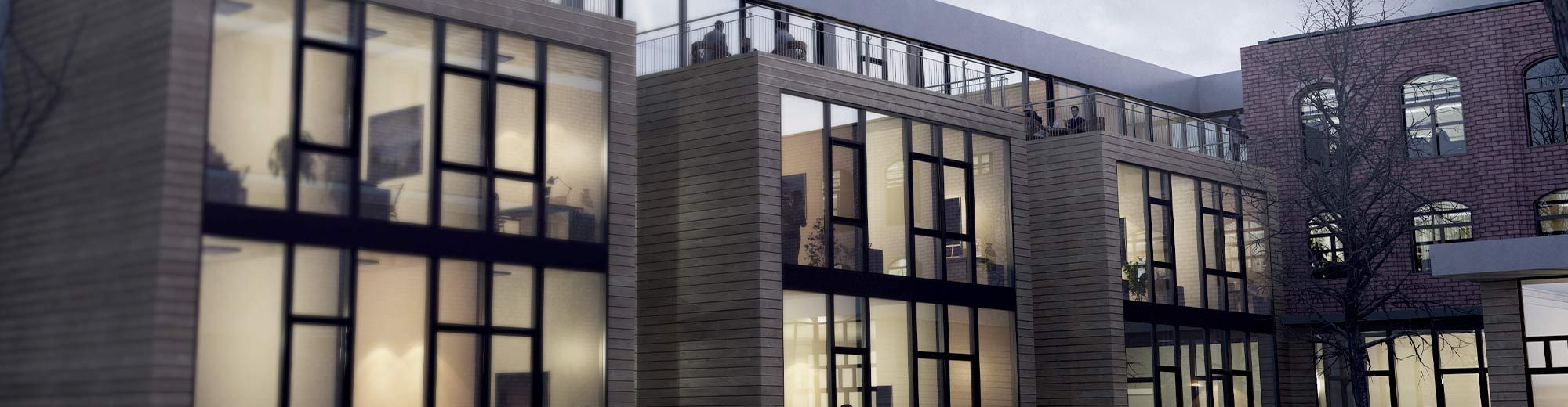 Der in die Jahre gekommene Flügel eines U-förmigen Fabrikgebäudes aus den 20er Jahren soll abgerissen und durch einen Neubau ersetzt werden. Um den Platz optimal auszunutzen, wurde auf eine Kammstriktur zurückgegriffen und Büros hintereinander und verschachtelt angeordnet. Die dreiseitige Grenzbebauung führte zu einer totalen Orientierung hin zum Innenhof.